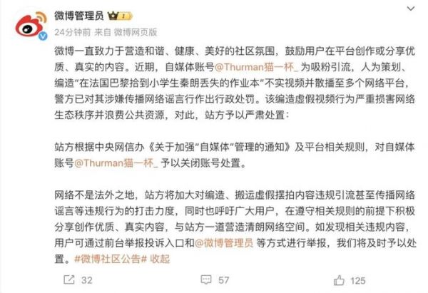即便说这位网红也是很快啊,就在网上发布了道歉声明。