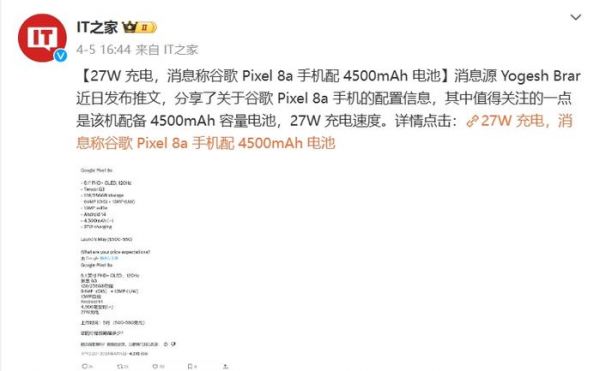 随着发布时间的临近,关于谷歌Pixel 8a的消息也在大量出现。