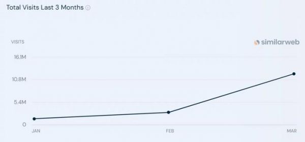 据Similarweb统计,月之暗面官网3月的月访问量约为1220万次
