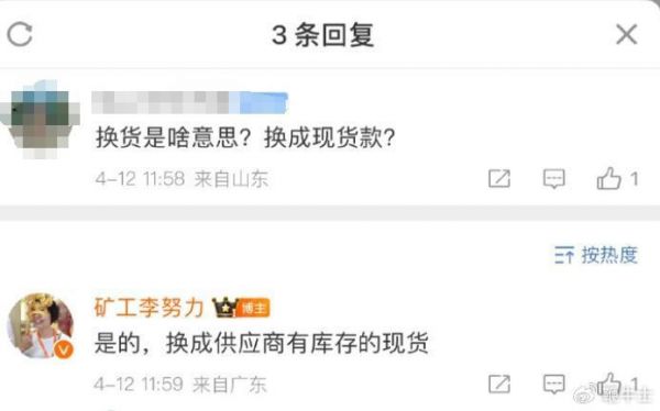 在微博小店里出售黄金的「矿工李努力」告知此前购买预售商品的消费者只能换现货或者退款。