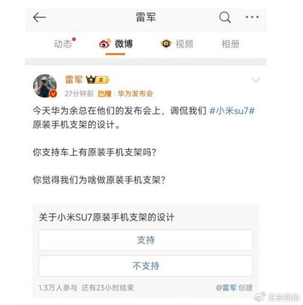 而接下来的一切则更加充满了戏剧性。发布会结束后,雷军在社交媒体公开回应了余承东的调侃,并发起了是否支持小米手机支架设计的投票,有超八成的网友都支持这项设计,但也出现了不一样的声音。