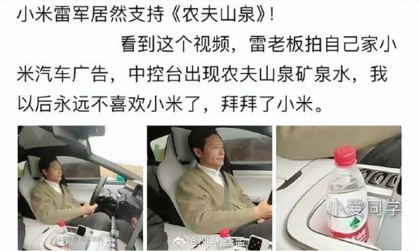 网友斥责雷军的小米汽车广告中出现农夫山泉, 咋回事?