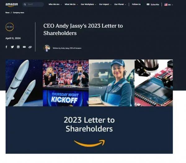 在公布这项任命的前一天,亚马逊公司CEO安迪·贾西发布了亚马逊的2023年度股东信,提到2023年亚马逊在AWS和AI领域投资显著,其中AWS云服务营收从800亿美元增加到910亿美元,同比增长13%。同时,还先后推出了Graviton 4通用CPU芯片和AWS Trainium 2 AI芯片。在生成式AI方面,公司推出的新功能也获得了客户认可,表现出对公司前景的乐观预期。