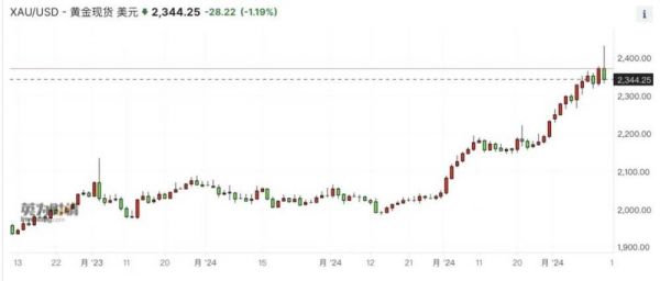 与之对应的是飙升到令人直呼傻眼的国际金价。4月12日,黄金现货价格盘中最高突破了2430美元/盎司,相较于年初攀升近18%,秒杀了包括美国股市、日本股市等热门资产。