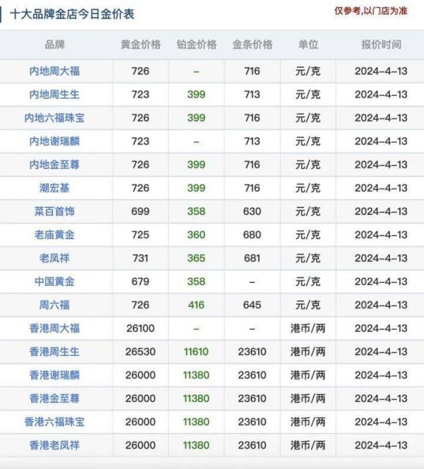 如果你在4月13日走进周大幅门店,首饰黄金1克的价格已经高达736元。一个月前,价格为1克666元。也就在去年,价格一度还在400~500元区间。