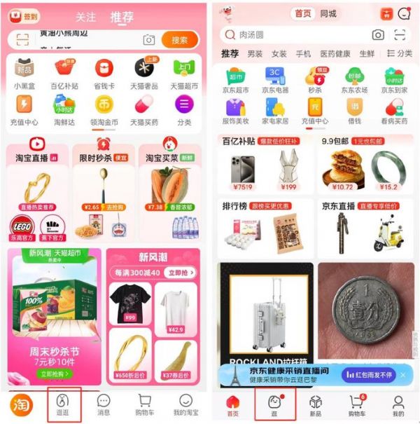 淘宝和京东的“逛”处于同一位置