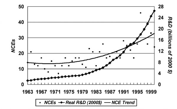 图:美国医药产业总研发成本与上市新药数量