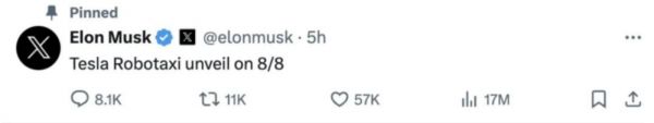 一向看不惯媒体的马斯克,也是站出来回应“路透社在撒谎”。不过几个小时后,马斯克突然宣布,特斯拉将在8月8日发布无人驾驶出租车Robotaxi。