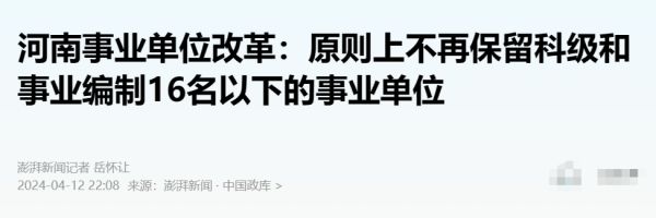 这一轮河南的事业机构改革就是如此。