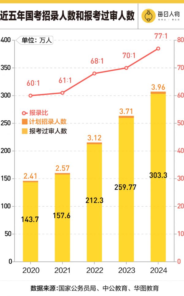相反,由于退休潮出现,加上就业兜底政策的存在,从国考到省考,招录人数不减反增,反而出现了罕见的“公务员扩招”现象。