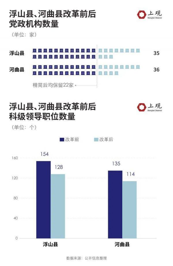 作为典型的山西浮山县,将35个党政机构精简为22个,科级领导职数由154名精简为128名,涉改县直事业单位由179个精简为40个,精简78%,涉改事业编制由1944名精简为970名,精简约一半。