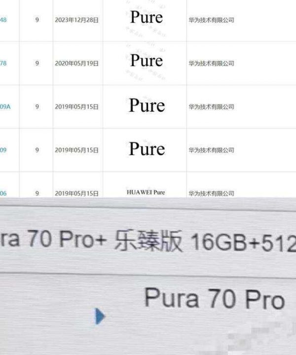 华为技术有限公司已申请注册多个“Pura”“HUAWEI Pura”商标,国际分类为科学仪器。最早的商标申请可追溯至2019年5月,目前已有两枚商标成功注册。Pura系列的预热已经开始,官网测试型号包括Pura 70、Pura 70 Pro、Pura 70 Pro+、Pura 70 Ultra等,预示着未来产品的丰富多样性。