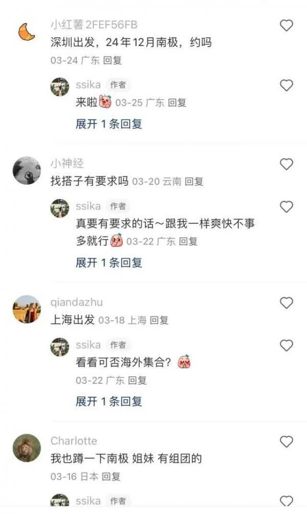 打开小红书,有关“南极”的帖子有31万,有关“南极旅游”的攻略帖子也有4万多,寻找前往南极的邮轮拼舱帖子下,评论区不少网友都纷纷留言寻找同行的小伙伴。