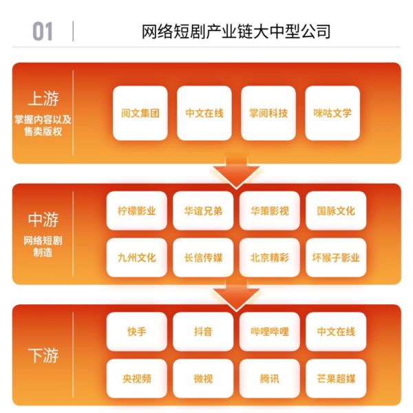 早在2019年、2021年,下游互联网平台快手、抖音就分别入局微短剧。自2022年下半年起,传统影视产业公司也相继入场:上游的阅文集团、掌阅科技,中游的柠萌影业、华策影视等,试图主营业务外寻找新的增长曲线。