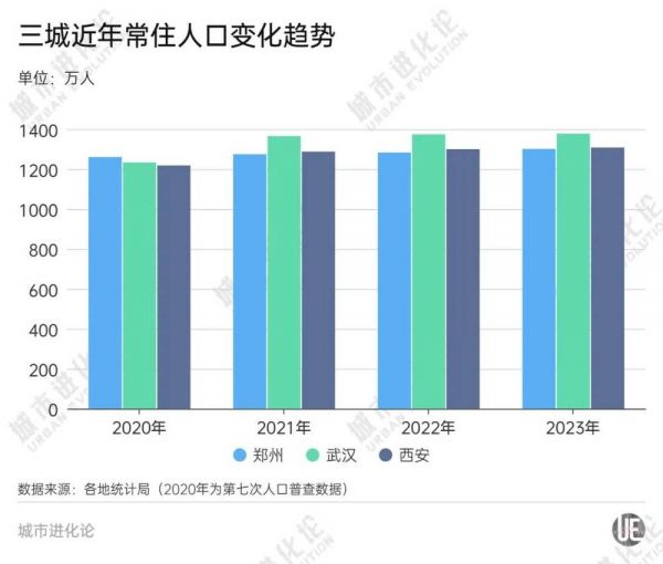 同年,西安、武汉常住人口增量分别为8.23万人、3.5万人,郑州与武汉、西安的人口差距进一步缩小至76.6万人、7.02万人。