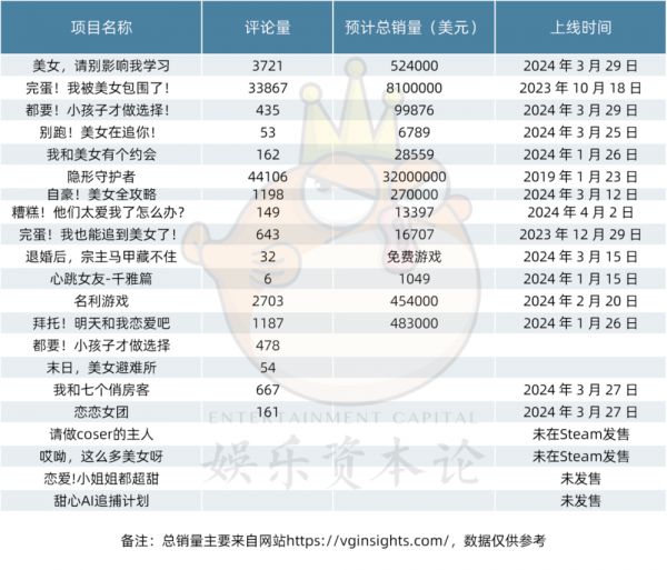 现在,Steam游戏库内标有“全动态影像”tag的游戏,共有417款,其中恋爱模拟类型的共有21款,通过xx网站的分析推算,除了《完蛋》外,都没有破百万美元,多数游戏评论都尚未过千,并不能称之为爆款,其中最少的《退婚后,宗主马甲藏不住》只卖了960份。