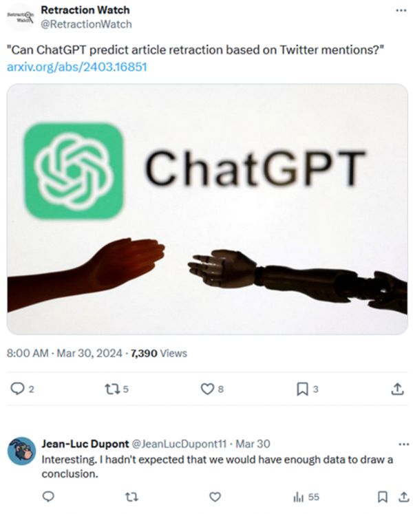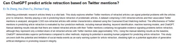 “ChatGPT 可以根据推特提及来预测论文撤稿吗?显然可以!请看这项研究……”