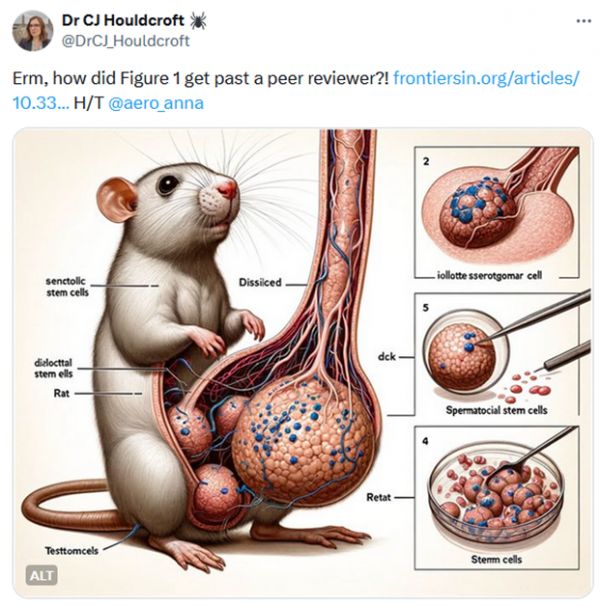 作为ChatGPT预测的基础,研究首先探索了推文本身能否预测撤稿。我们都知道,有许多问题论文首先在推特上被曝光,然后才被撤稿。比如用AI画小鼠插图的这篇“著名”论文。
