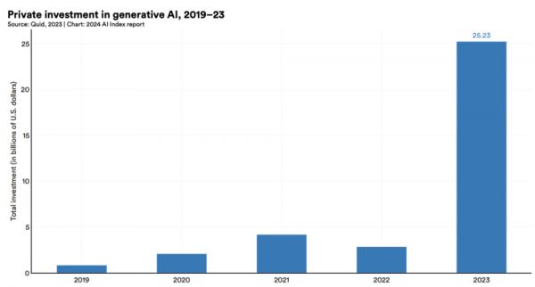 尽管人工智能整体的投资下降,但生成式人工智能仍是“全村的希望”。