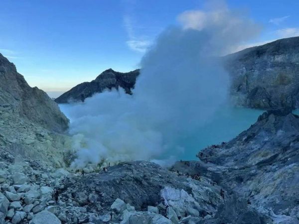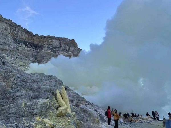 甚至危险的地方也全是人。硫黄矿附近的浓烟下面,征服火山的人正在排队拍照。