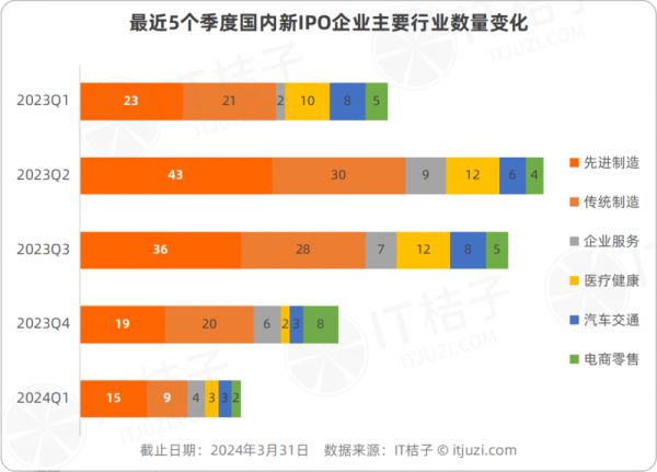 本篇基于专业的 IT 桔子数据库,将为大家带来 2024 年一季度的国内 IPO 行情分析。