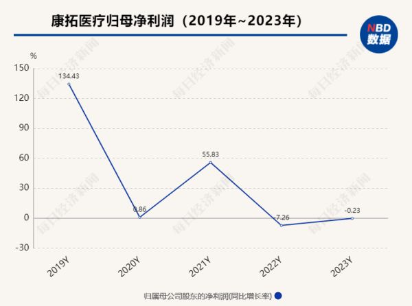 股价方面,据《每日经济新闻》,2021年5月18日康拓医疗在上交所上市,发行价17.34元每股,首日收盘价92.05元,涨幅高达430.9%,此后股价一路上扬,自6月1日达到历史最高价133.35元/股后开始震荡下跌,从2024年2月开始维持在20元/股左右,距高点跌去超70%,