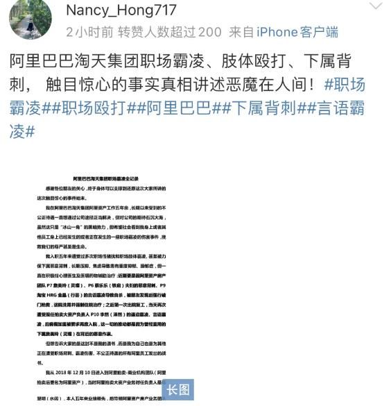 Nancy称“长文内容是真实的”。Nancy告诉记者,其日前刚被阿里资产强行解除劳动合同,在职期间任阿里资产全国房产业务总经理。