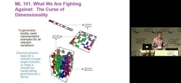 2019年第7届海德堡桂冠论坛(Heidelberg Laureate Forum, HLF)中,Yoshua Bengio发表题为“面向人工智能的深度学习(Deep Learning for AI)”的演讲,演讲中围绕维数灾难(Curse of Dimensionality)问题展开探讨。