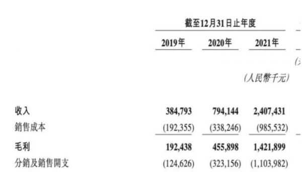 根据招股书,2019至2021年,蕉下分销和销售费用为1.25亿元、3.23亿元、11.04亿元,占营收为32.45%、40.7%和45.9%。其中在广告及营销的开支分别为0.369亿元、1.19亿元、5.86亿元,占比为9.6%、15%、24.4%,增长率高达223%和392%。