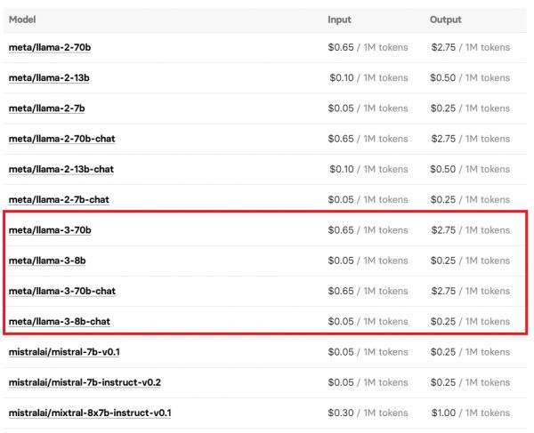 你还可以通过调用开源模型平台 Replicate API 接口来体验 Llama 3,其使用的价格也已经曝光,不妨按需使用。
