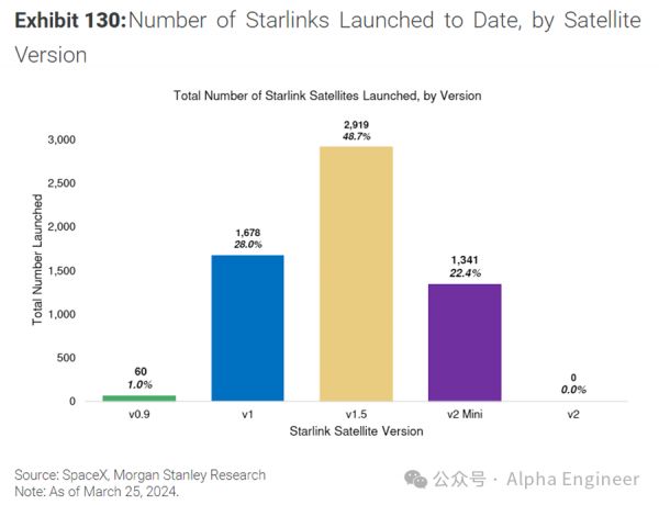 v1.5作为v1的升级版本,于2021年9月首次推出。截至目前,SpaceX已发射近3000颗v1.5卫星,使其成为星链星座中占比最高的卫星。