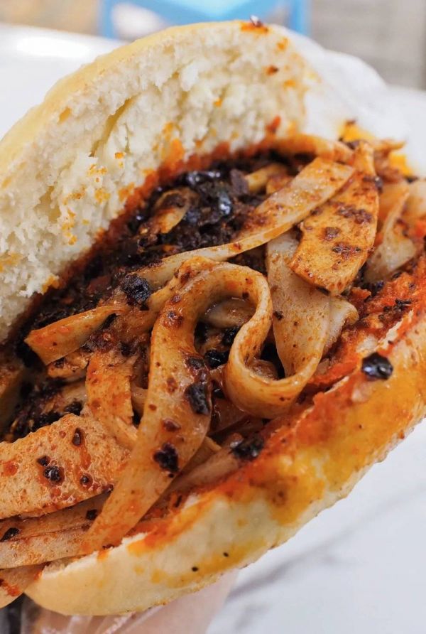 馍夹辣子,宝鸡一道菜。摄影/陈仓识火