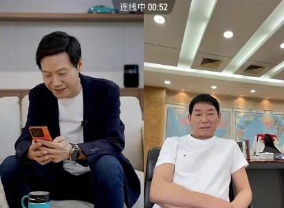 小米创办人,董事长兼CEO雷军在今日的直播中连线长城汽车董事长魏建军。(新浪科技)