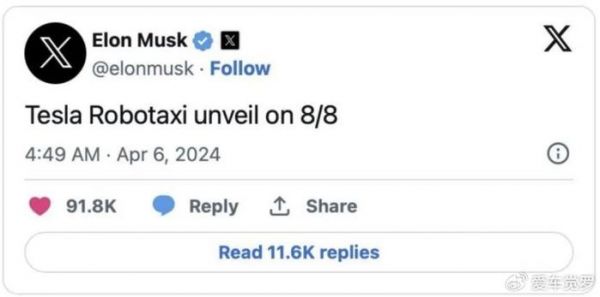 图1: 特斯拉将于2024年8月8日推出无人驾驶出租车