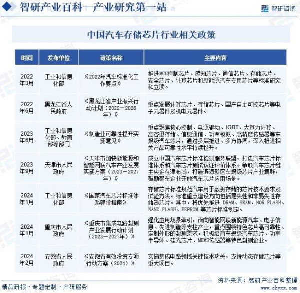 行业政策梳理|智研产研中心——汽车存储芯片产业百科【654】