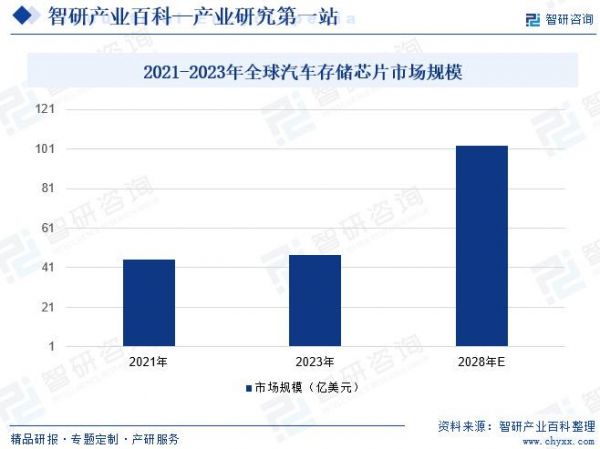 随着智能化程度的不断加深,汽车正逐步完成由交通工具到移动终端的转变,同时也给存储行业带来新的市场机遇。当前,汽车产品中主要是信息娱乐系统、动力系统和高级驾驶辅助(ADAS)系统中需要使用存储设备,随着自动化程度提高,所需的存储容量也随之增长。2023年全球汽车存储芯片市场价值47.6亿美元,预计到2028年将达到102.5亿美元。汽车存储市场是一个高成长的半导体细分赛道。