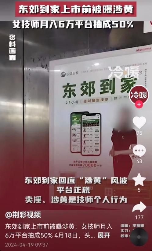东郊到家则回应“涉黄风波”称,平台正规,卖淫、涉黄是技师个人行为。