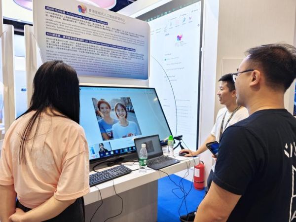 4月14日,在第二届香港国际创科展上,参观者在香港生成式人工智能研发中心展馆体验AI成像。(新华社)