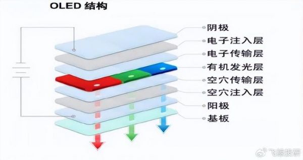 结构上,OLED一般由基板、阳极、空穴功能层、有机发光层、电子功能层、阴极组成类似“汉堡包”的结构。