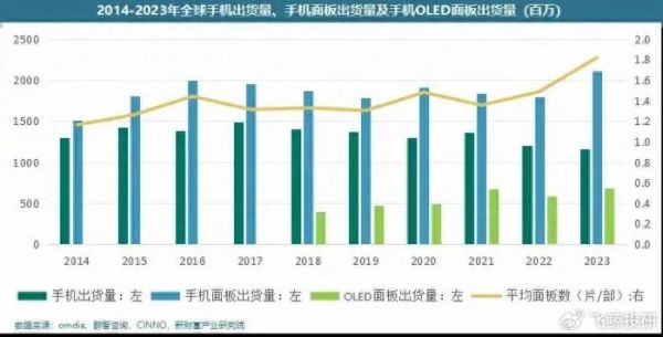 虽然最近三年用户平均换机周期显著拉成,导致智能手机出货量下滑,但2023年智能手机面板出货量却实现了18.1%的增长,背后原因是OLED面板和折叠屏手机的推动。