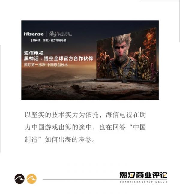 而海信电视以自身技术实力在助力中国游戏出海时,则是另一种时代面向“中国制造”。《黑神话:悟空》等游戏本身作为中国文化的内容载体就自带中国文化的传播属性,是“中国制造”软性的一面,而海信电视坚实的技术基础和硬件实力,更可以让世界看到“中国制造”的硬实力。