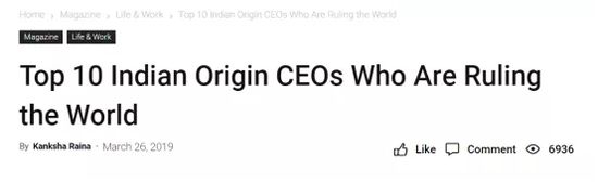 甚至有美国媒体说,10个印度裔CEO正在统治世界。