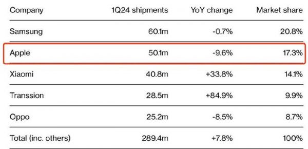 与此同时,iPhone销量也在下滑。知名研究公司IDC发布报告称,尽管第一季度全球整体手机销量同比增长8%,但iPhone销量同比下滑10%。