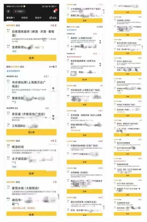 我有本职工作,只能干业余的众包。这些天我假日就从早干到晚,工作日早晨跑两小时,晚饭后再跑到夜里一两点,或者两三点。夜里给钱多一些,能挣到钱的都是偏远地方。半夜里我跑到过相公镇东边的村里,跑到方城,跑到兰陵村子里,跑到沂南山里面,都是乡间小路。都是骑摩托。太黑,灯书院照不远,有时候就骑到了沟里。一过长春路,夜里都是大货车,擦身而过,心里也打怵。送完货,骑车回来,才觉得手麻觉得冻得不行。有一次我实在太冷了,就把车停在田里,绕着跑了一阵,看看高德地图,在临沂大学正北九公里,回家还很漫长。