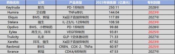图:重磅药物“专利悬崖”时间,来源:锦缎研究院