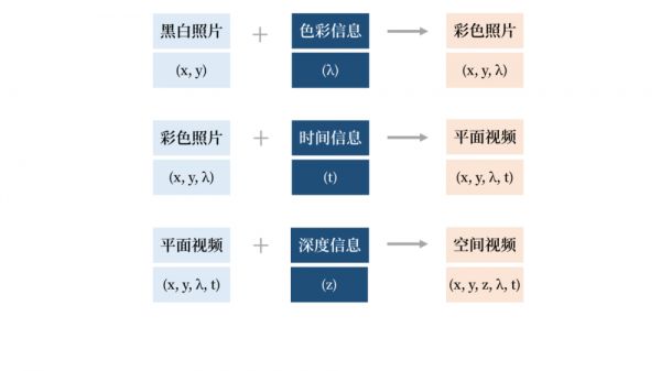 加入深度信息之后,得到5维光场的空间视频(x, y, z, λ, t)。