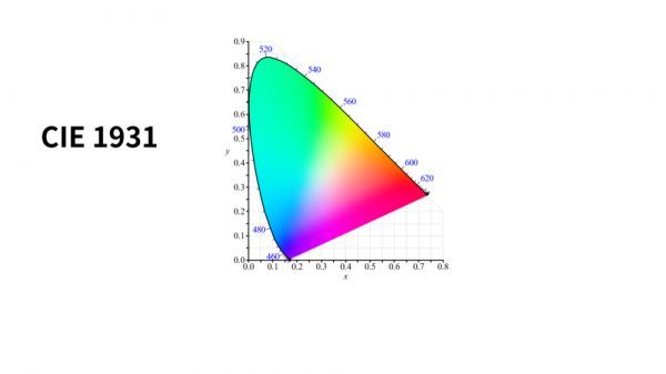 这是一张CIE 1931色度图,我们可以认为它覆盖了人眼能分辨出来的所有色彩。