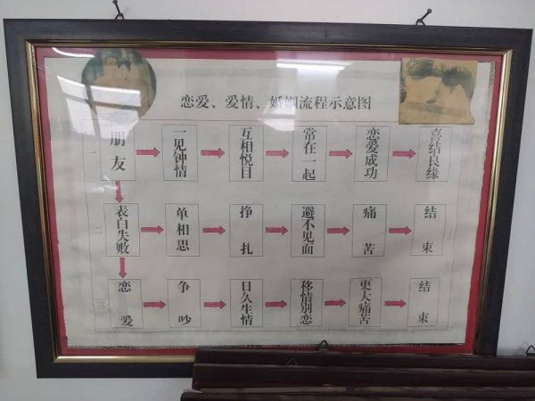 金点子婚介公司的墙上挂着“天下第一红娘”的招牌,另一面墙上,则挂满了李继延接受媒体采访的合影。婚介所里,处处可见李继延总结的“爱情箴言”,他给每一个都取了名字:《爱情兵法》《择偶忠告》《恋爱三部曲》……