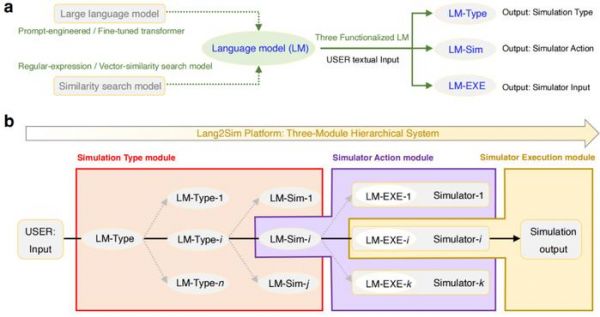 图 | Language-to-Simulation(Lang2Sim)workflow(来源:arXiv)为了实现这一目标,该模型被划分为三个主要模块:LM-Type(模拟类型)、LM-Sim(模拟性能)、以及 LM-EXE(模拟参数)。