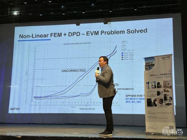 Qorvo做PA采取了两种方式,一种是线性PA,一种是非线性PA。其中,线性PA可以确保在规定的工作范围里可以被预测。非线性的PA方案中,Qorvo采用非线性(Non-Linear)FEM+DPD方案,不仅解决了EVM问题,还在功率效率上实现了提升。
